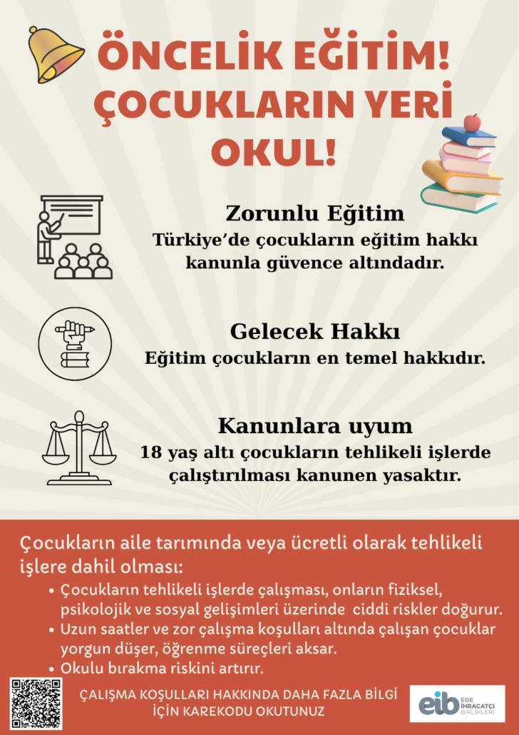 Çocukların eğitim hakkı, geleceğe dair en temel güvencelerinden biridir. Bu nedenle, yürürlükteki yasalarla uyum içinde hareket etmek ve 18 yaş altı bireylerin tehlikeli işlerde çalıştırılmasını önlemek tüm paydaşların ortak sorumluluğudur.
